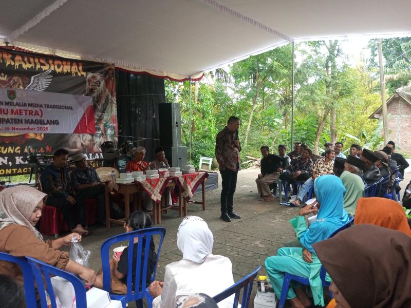 KALIREJO – Sebuah sinergi apik antara jajaran pemerintahan dan pegiat seni tersaji di Dusun Kalipucung, Desa Kalirejo, Kecamatan Salaman. Melalui kegiatan Temu Metra (Temu Media Tradisional), kesenian rakyat kini diposisikan bukan sekadar hiburan, melainkan sebagai media efektif publikasi kebijakan pembangunan kepada masyarakat.