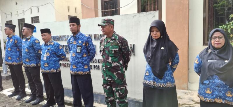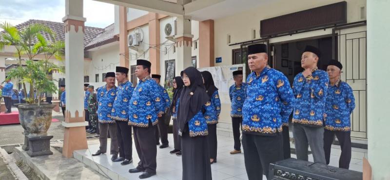 Pelaksanaan apel berlangsung khidmat dan tertib, diiringi dengan penghormatan kepada bendera merah putih serta menyanyikan lagu kebangsaan Indonesia Raya. Suasana penuh semangat terlihat dari kekompakan peserta apel yang mengenakan seragam Korpri berwarna biru.